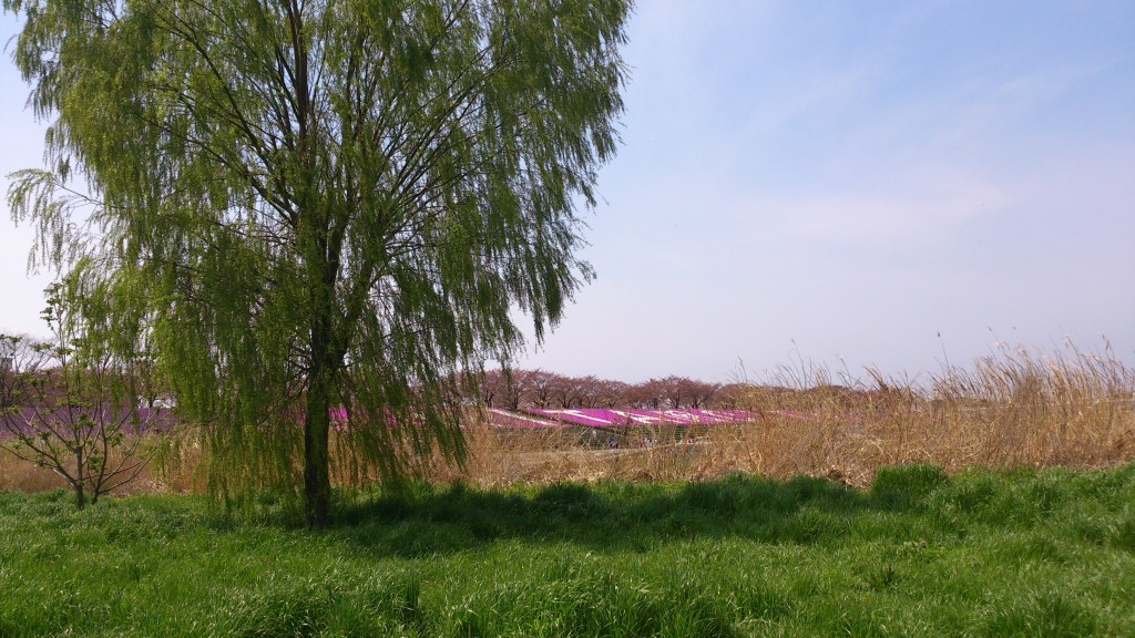 土手の芝桜も咲き、広い空間の荒川は都会のオアシスです。